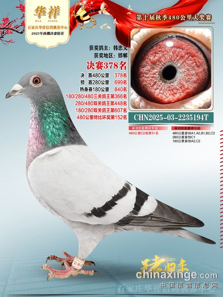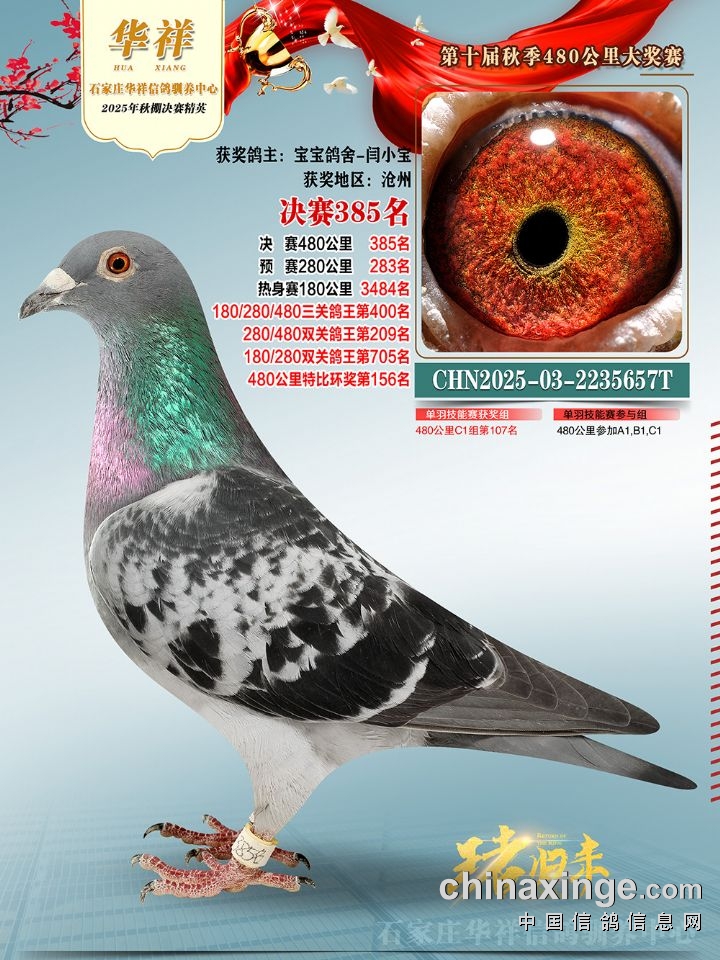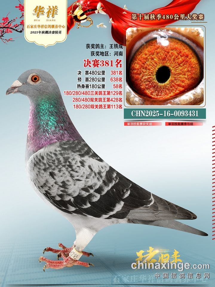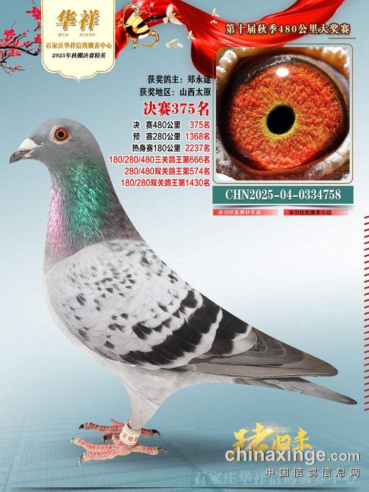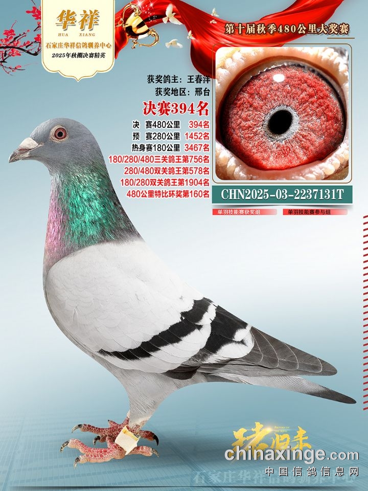 华祥公棚480公里决赛371名-400名获奖鸽图片赏析