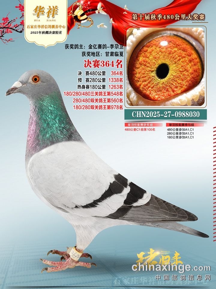 华祥公棚480公里决赛341名-370名获奖鸽图片赏析