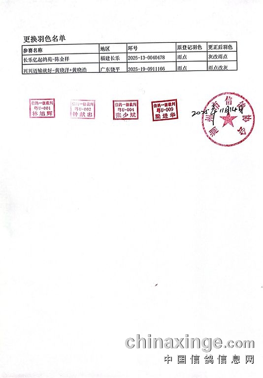 更换羽色名单