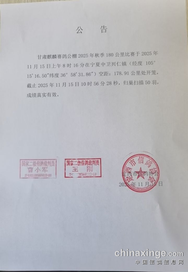 甘肃麒麟赛鸽秋棚2026年幼鸽入棚明细(持续更新中)