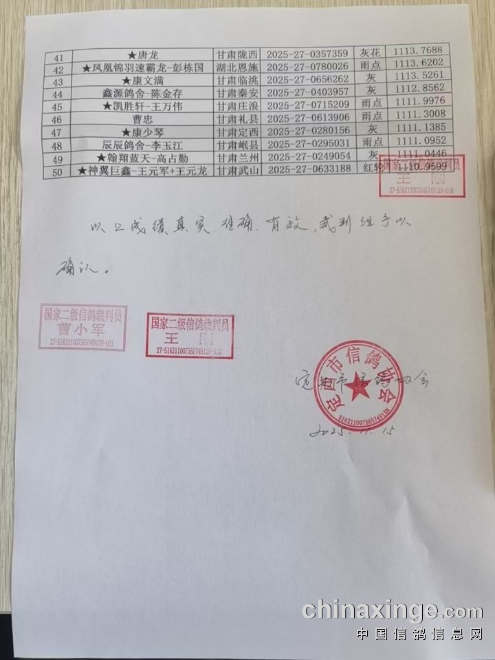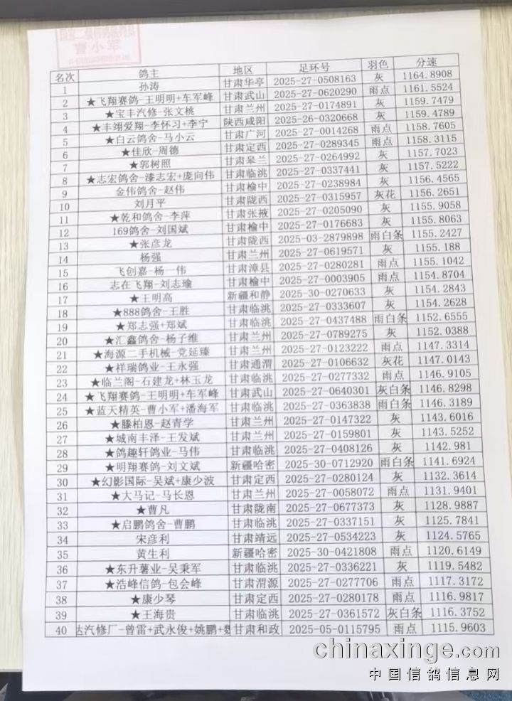 甘肃麒麟秋棚2025年500公里决赛获奖鸽鉴赏