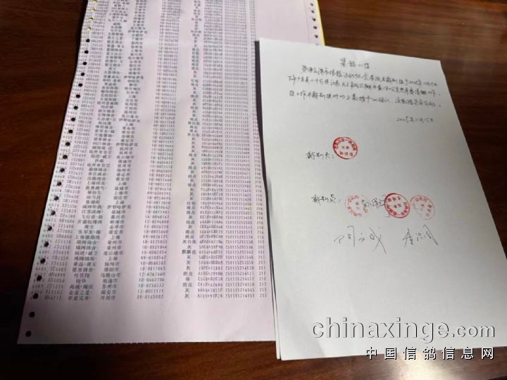 江苏云之翔公棚180公里热身赛成绩裁判签章