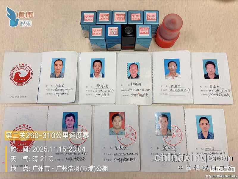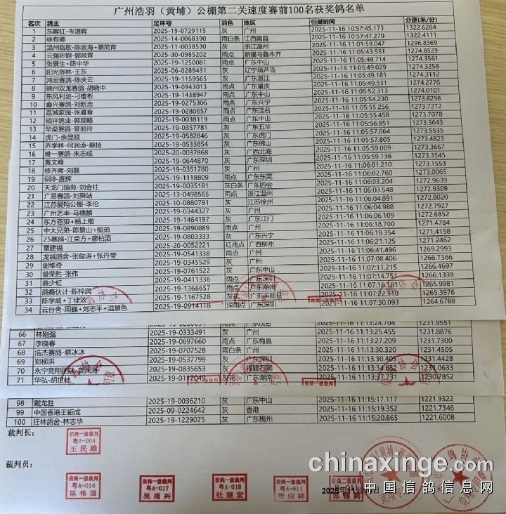 • 广州浩羽(黄埔)公棚第一关单羽四关赛有效名单(第二关开笼起至次日19:00为有效报到期) (2025-11-17 22:31:32)