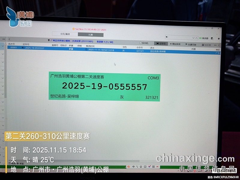 • 广州浩羽(黄埔)公棚第二关单羽常规赛获奖名单(公示2天,无异议即发放奖金) (2025-11-16 19:04:11)