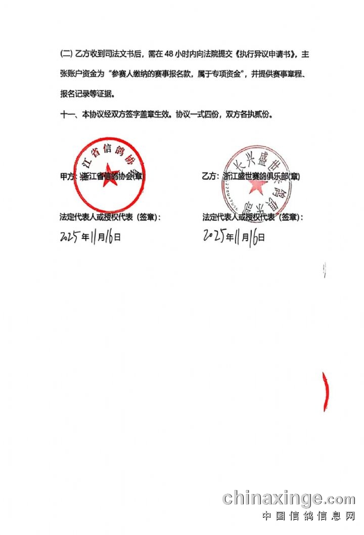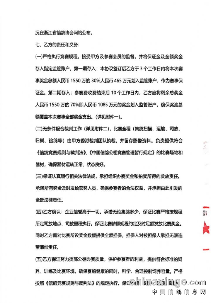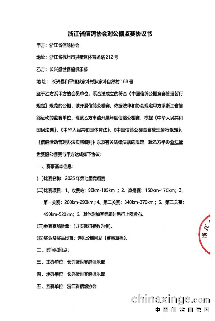 浙江盛世赛鸽公棚2025年竞赛全额奖金已存入第三方监管账户浙江省信鸽协会及银行监管