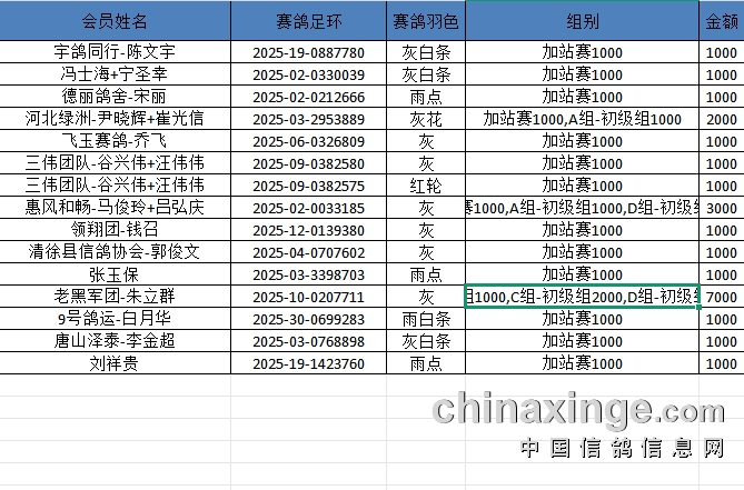 天津宇航小棚2025年加站赛获奖鸽照片