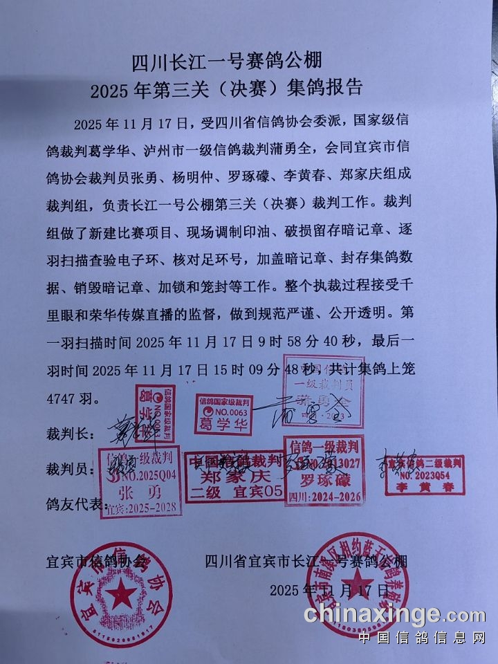 长江一号赛鸽公棚2026年(秋)集鸽名单(不断更新)