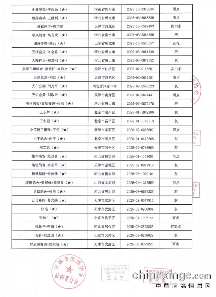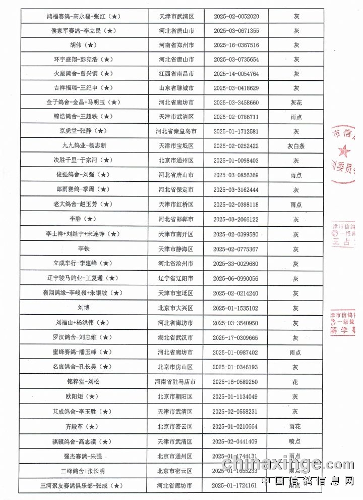 • 天津宇翔:520-530公里加站赛当日归巢数据(会员查询版) (2025-11-25 17:51:41)