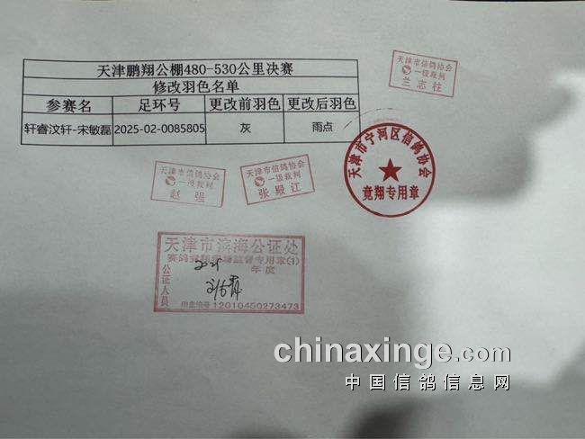 天津鹏翔公棚480-530公里决赛三关鸽王