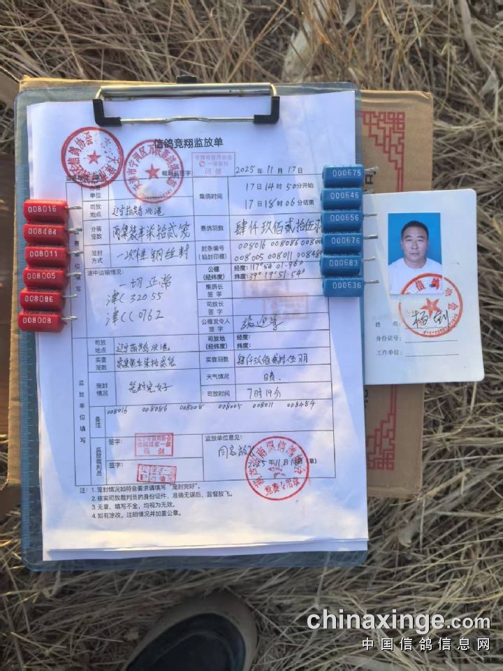 天津万联赛鸽公棚280-320公里第一关集鸽上笼清单
