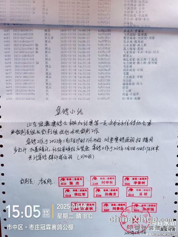 山东冠霖赛鸽公棚第一关加站赛集鸽清单(按鸽主)