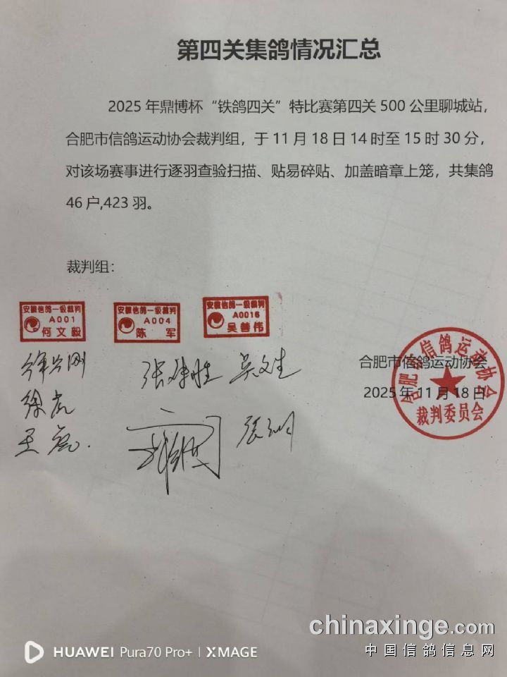 第四关集鸽情况汇总