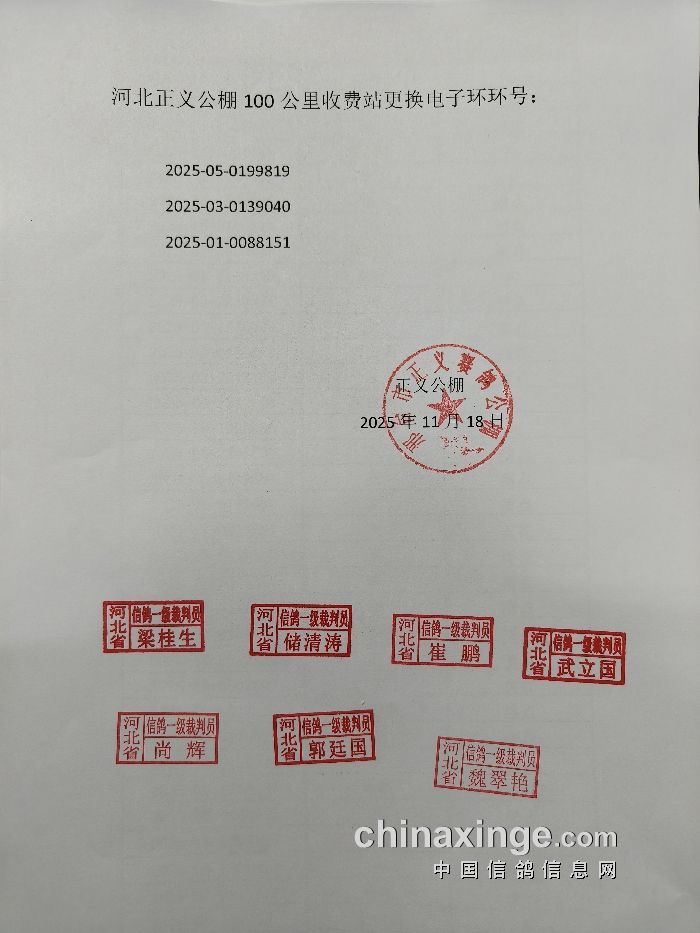 • 正义公棚100公里收费站开笼信息 (2025-11-19 10:48:32)