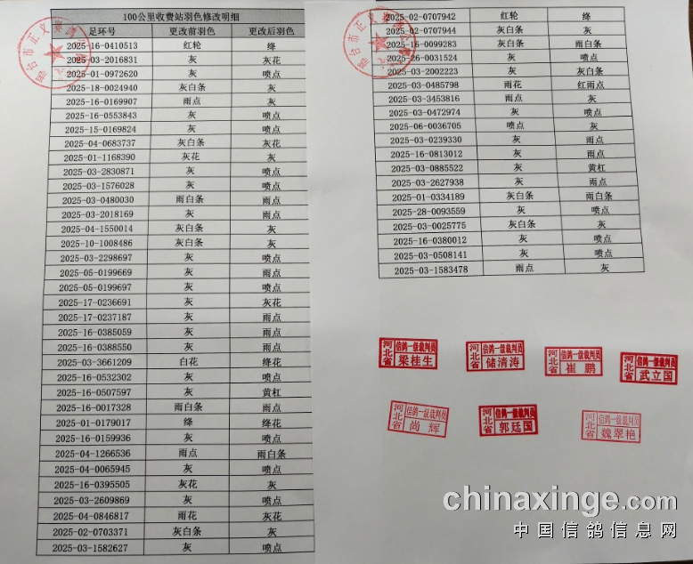 • 正义公棚第二次100公里收费站4日归巢数据(不排除漏扫、电子环损坏等) (2025-11-24 14:59:30)