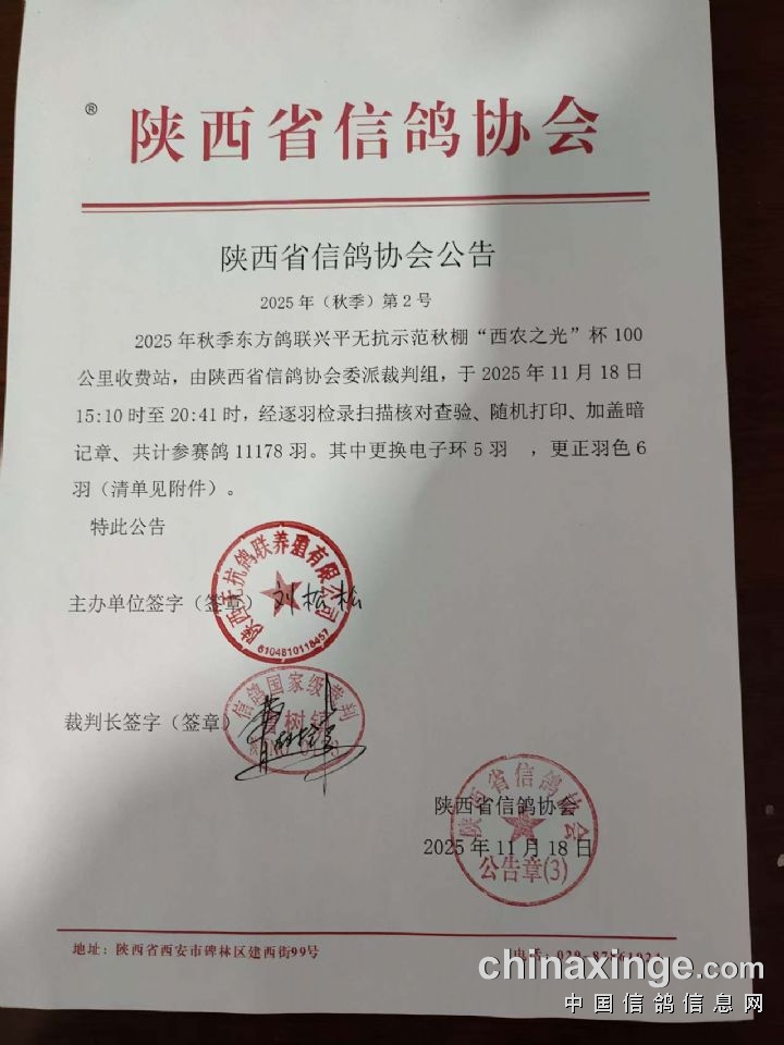 东方鸽联兴平无抗示范秋棚:陕西省信鸽协会公告