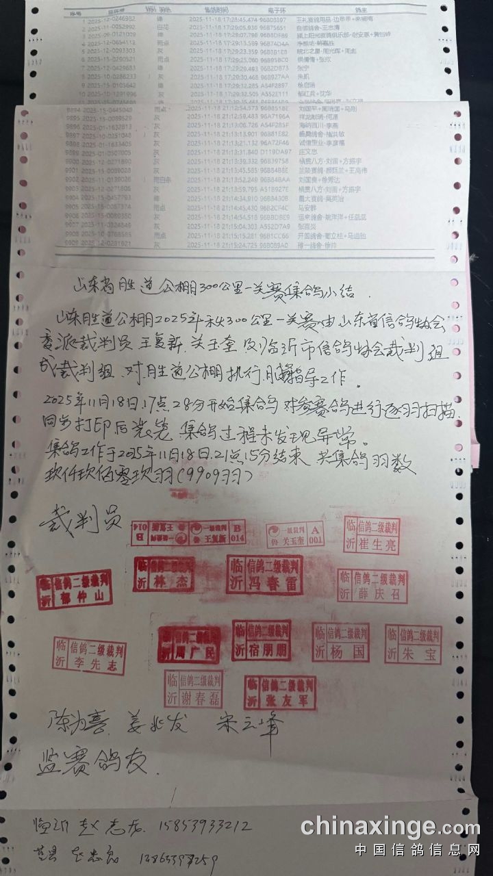 • 山东胜道公棚2025年第一关集鸽数据(按顺序) (2025-11-18 21:45:58)