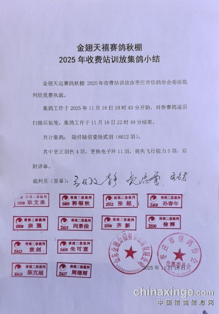 金翅天禧(大秋棚)2025年第二关比赛开笼公告及直播扫描链接