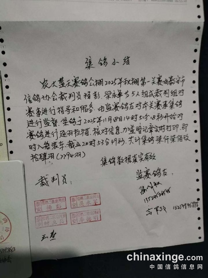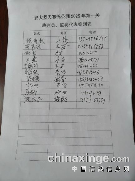 农大蓝天赛鸽公棚第一关集鸽清单(按顺序)