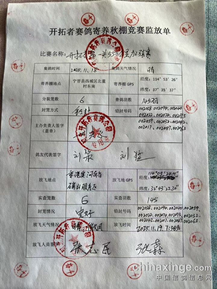 河北开拓者赛鸽寄养(秋棚)第一关550公里加强赛集鸽清单