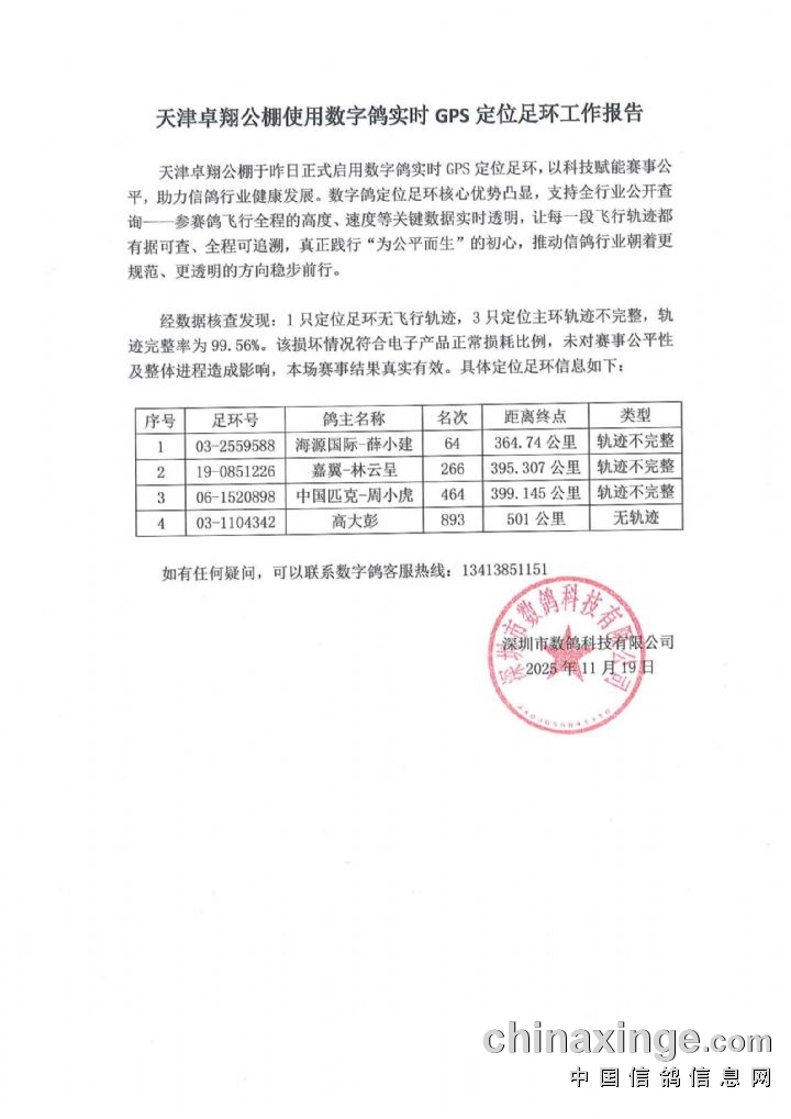 天津卓翔:在棚鸽名单