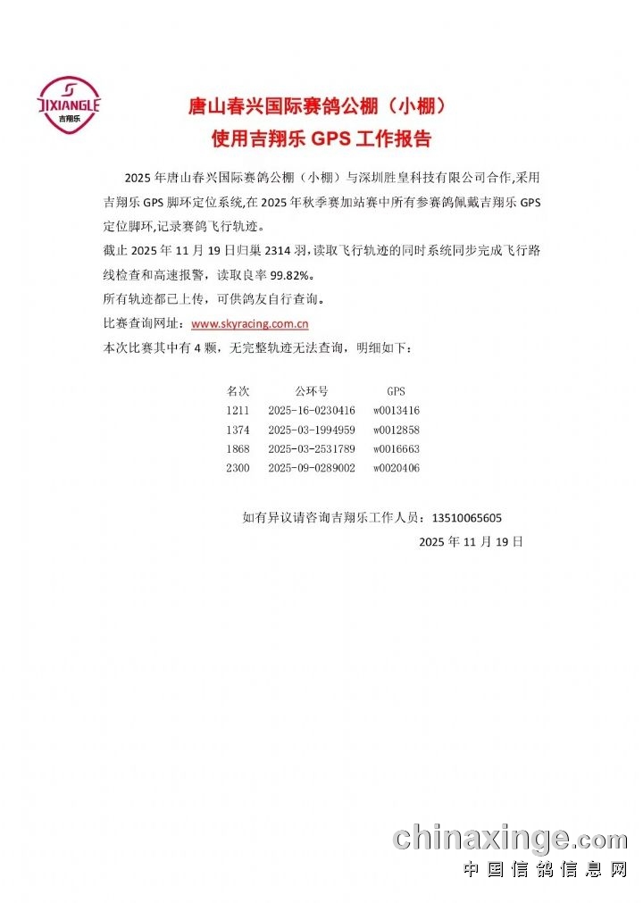春兴国际(小棚)加站赛使用吉翔乐GPS定位环工作报告