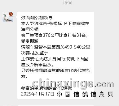 • 广东海翔(秋棚)第四关决赛采用智速捷GPS定位环记录设备声明 (2025-11-18 17:16:11)