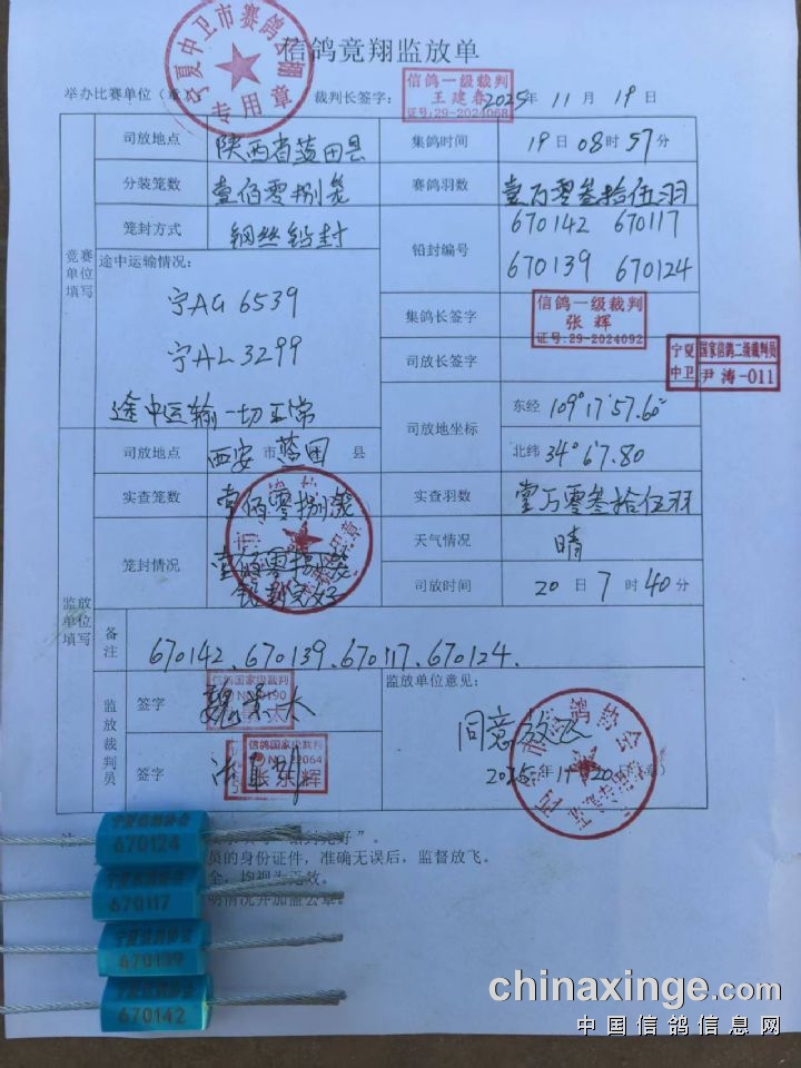 • 宁夏中卫赛鸽公棚520公里第三关奖金领取通知 (2025-11-20 17:10:31)