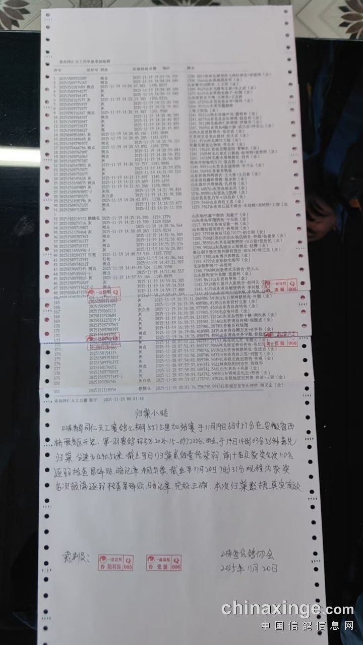 • 青岛同仁天工 加站赛二日归巢清单(大排名) (2025-11-19 19:15:06)