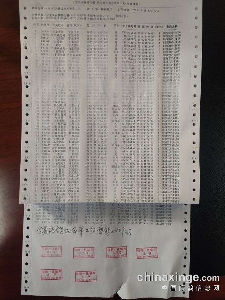 宁夏黄河赛鸽公棚双关鸽王加关赛第二关上笼清单