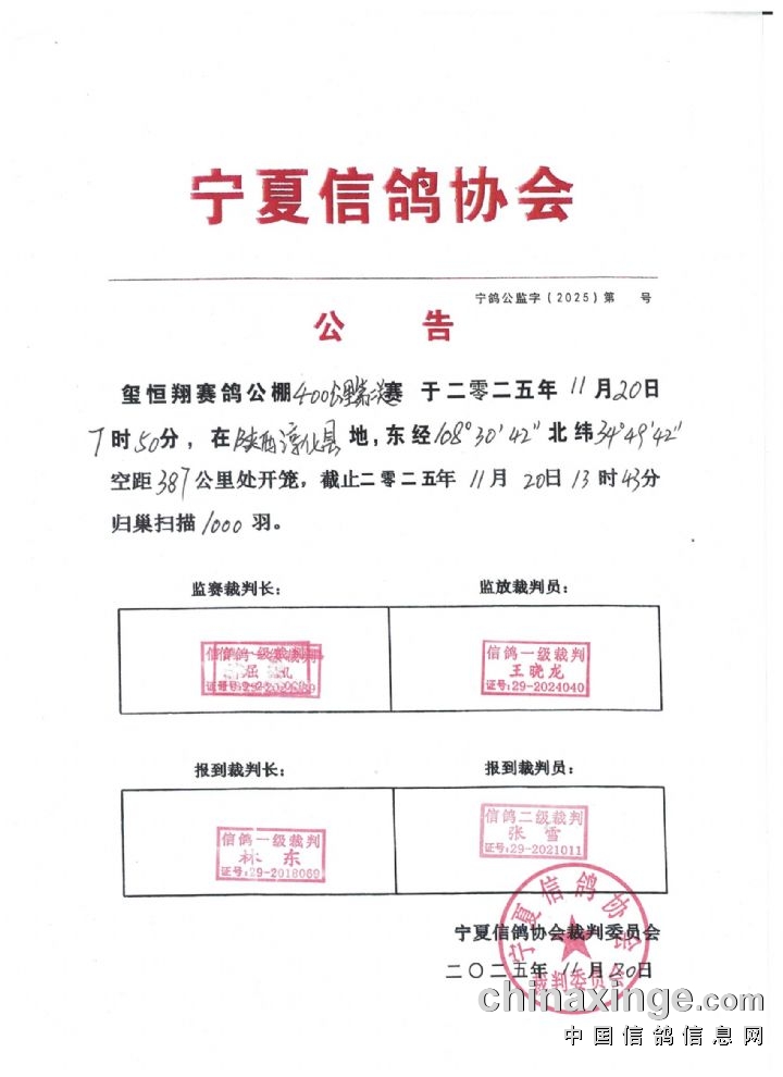• 宁夏信鸽协会公告 (2025-11-19 18:43:48)