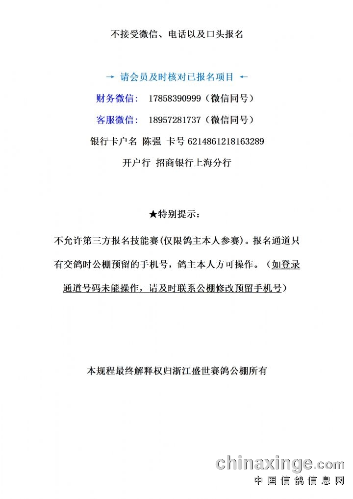 • 浙江盛世赛鸽公棚第一关技能赛清单 (2025-11-24 19:44:00)