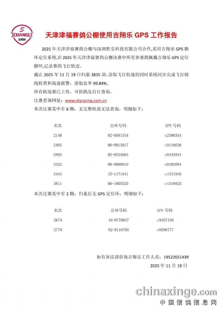 天津津福公棚480-500公里决赛使用吉翔乐 GPS 工作报告