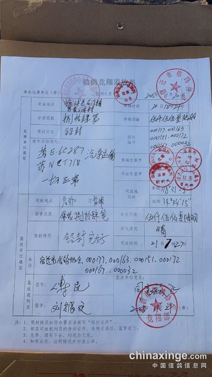 江苏奇迹公棚收费站集鸽清单(按上笼顺序)