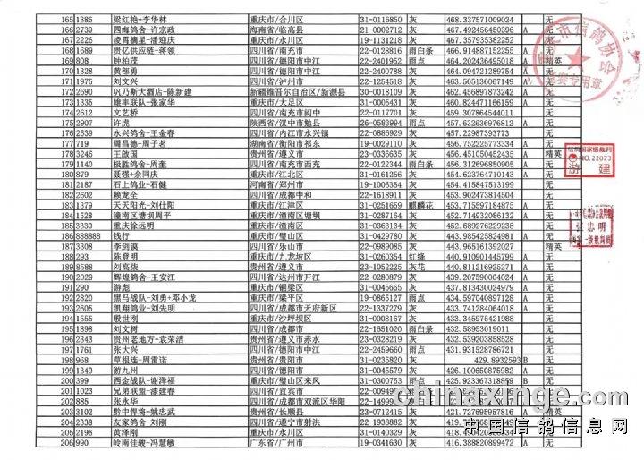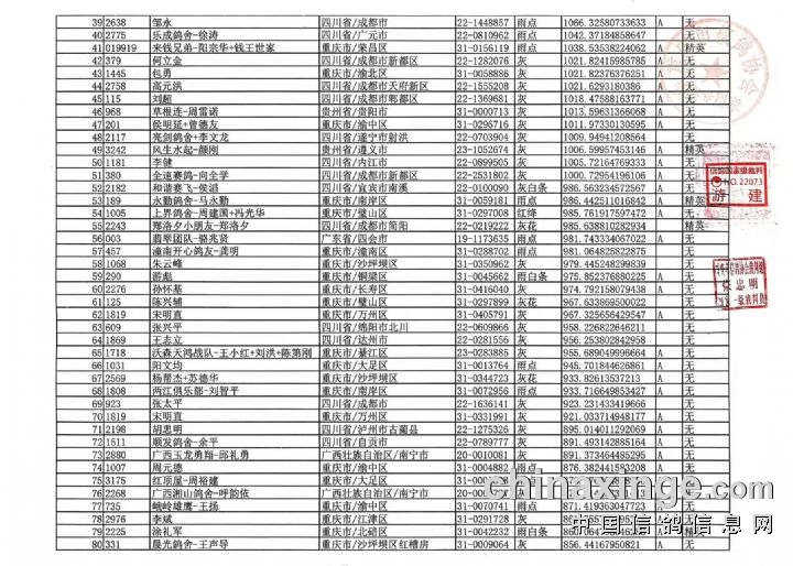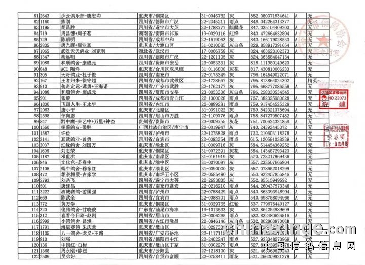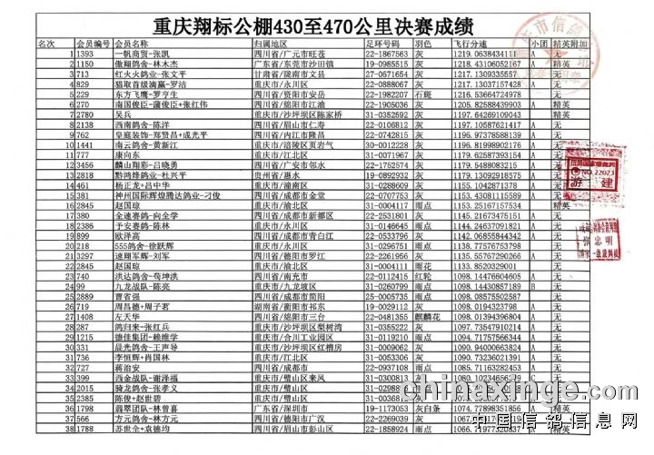 重庆翔标公棚决赛近期迟归清单