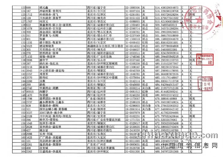 重庆翔标公棚2026年秋赛集鸽清单