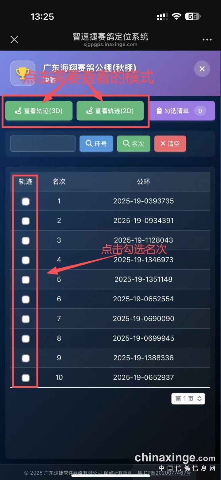 提示:如果此页面是训放清单,要想快速查询鸽环号,请按Ctrl+F然后输入您要查找的环号进行查找!
