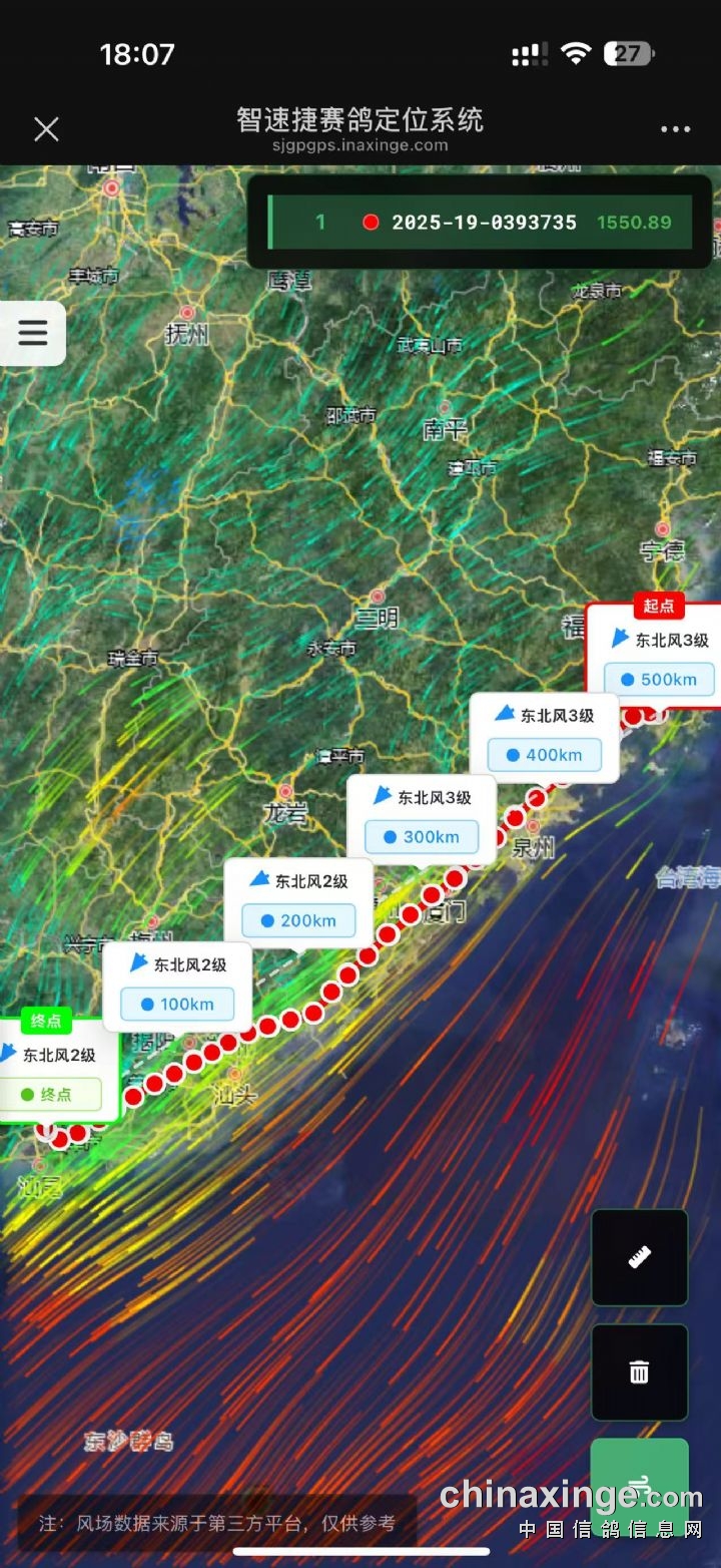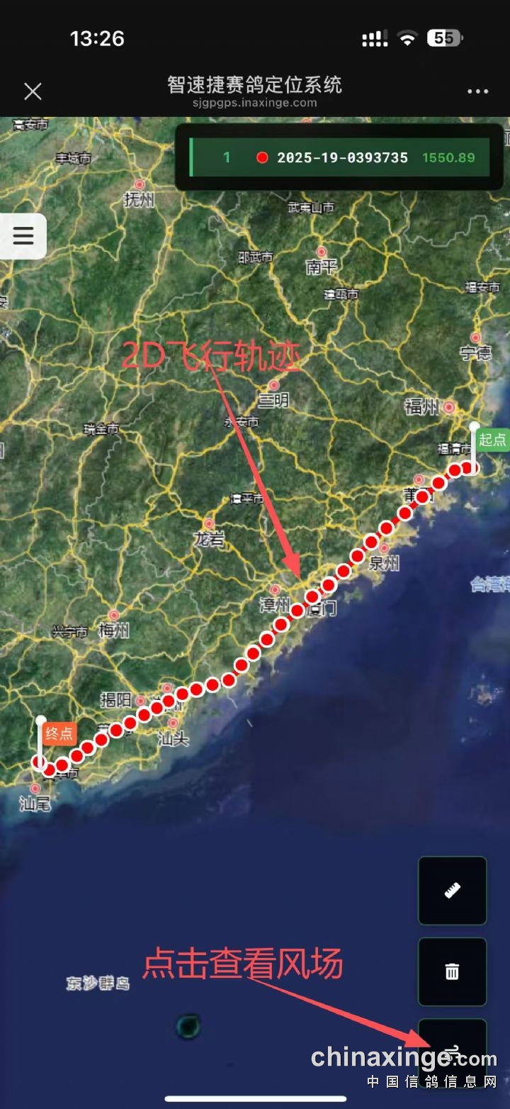 广东海翔(秋棚)第四关决赛GPS飞行轨迹查询