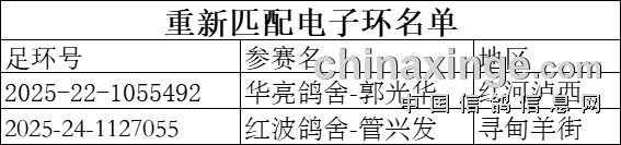 勝利飞翔公棚 320公里逐羽扫描上笼重新匹配电子环清单