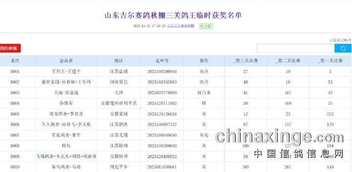 • 江苏瑞达(秋):第一关180公里上笼清单(按地区) (2025-11-26 21:38:58)
