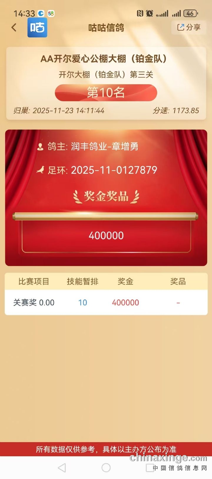 热烈祝贺我棚会员:润丰鸽业-章增勇