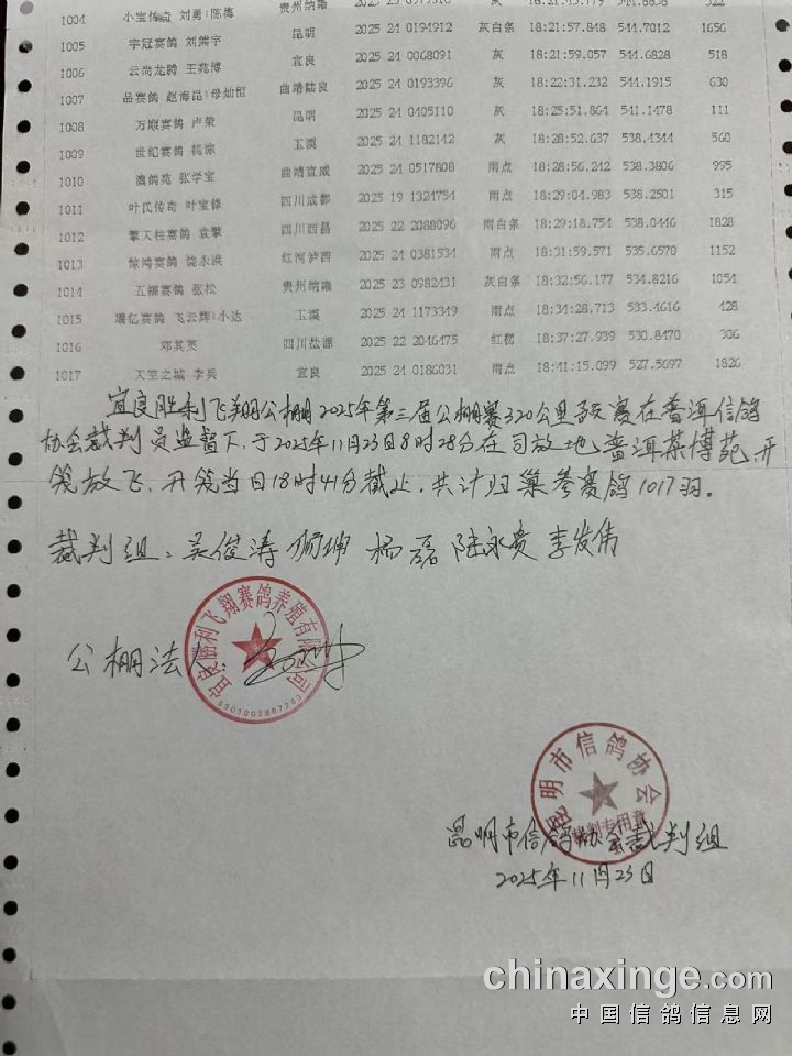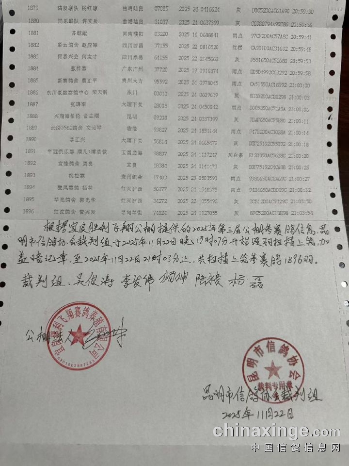 • 勝利飞翔公棚 320公里预赛逐羽扫描上笼清单 (2025-11-22 21:24:02)