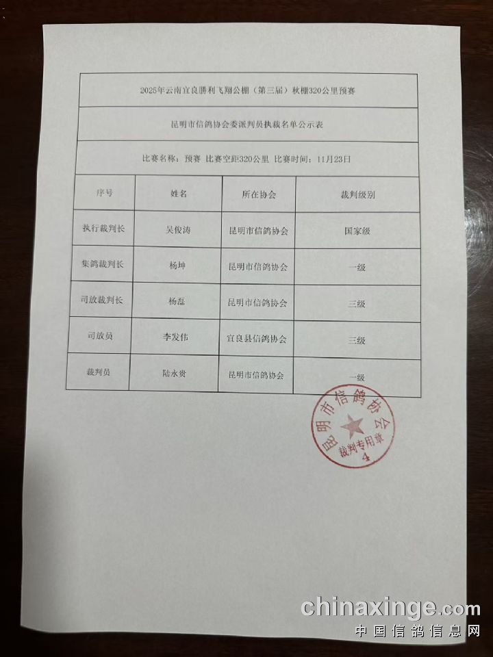 勝利飞翔公棚 320公里(第二关)预赛执裁文件
