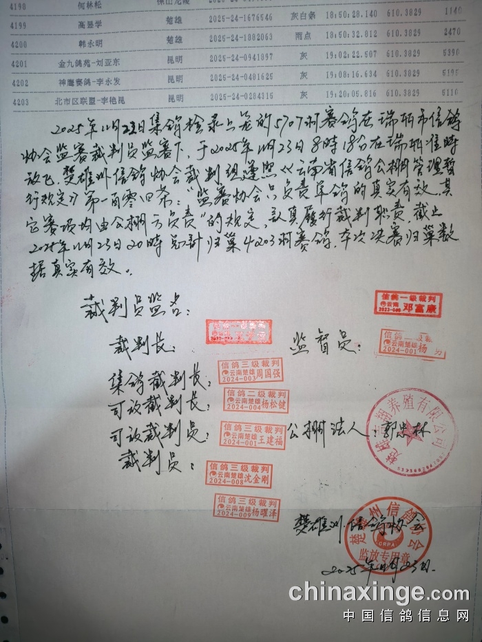 • 楚雄吉翔秋棚400公里决赛开笼通知 (2025-11-23 8:17:33)