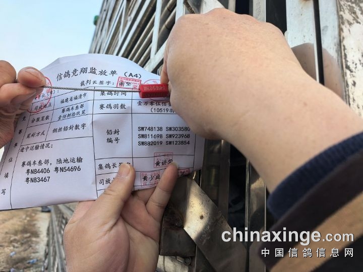 裁判对前名次获奖鸽进行验鸽