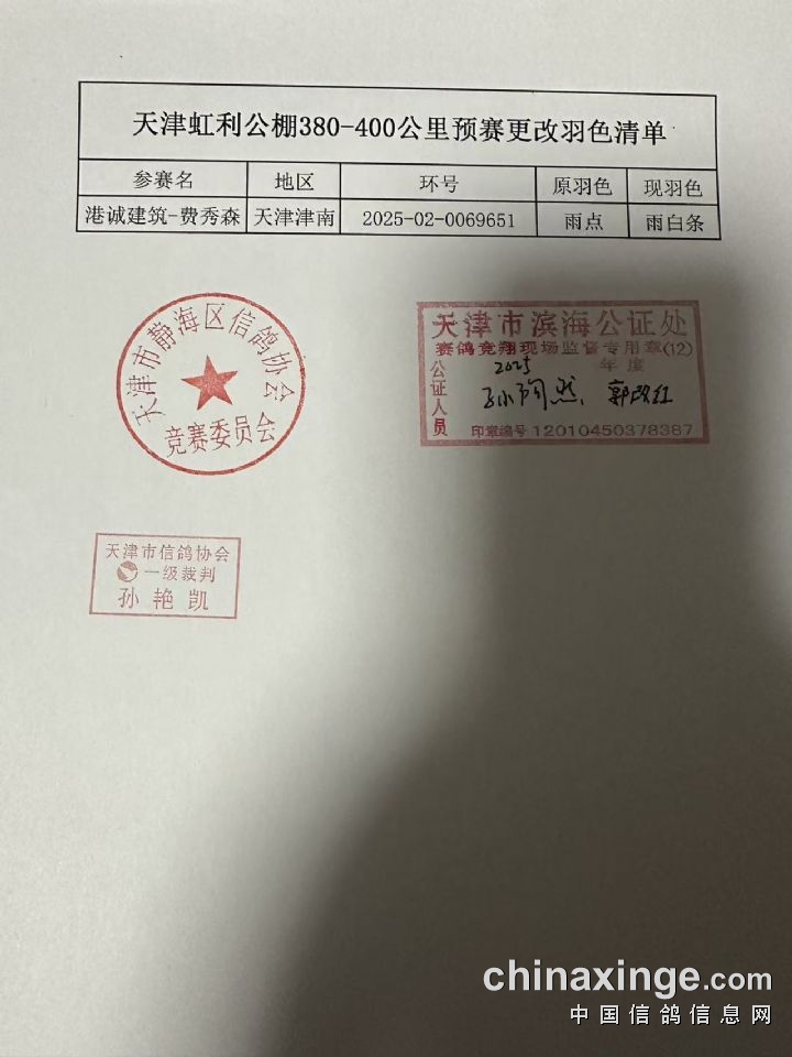 • 天津虹利公棚380-400公里预赛集鸽清单 (2025-11-24 17:44:58)
