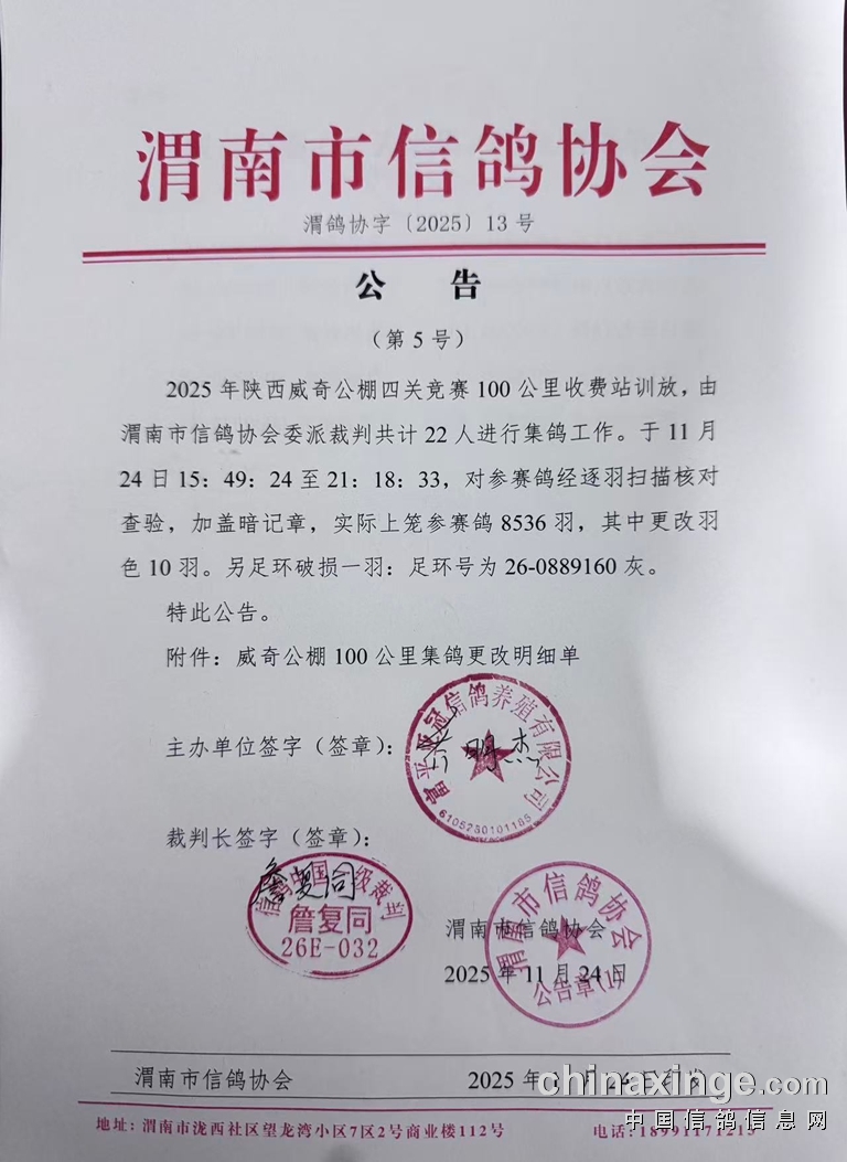 渭南市信鸽协会公告