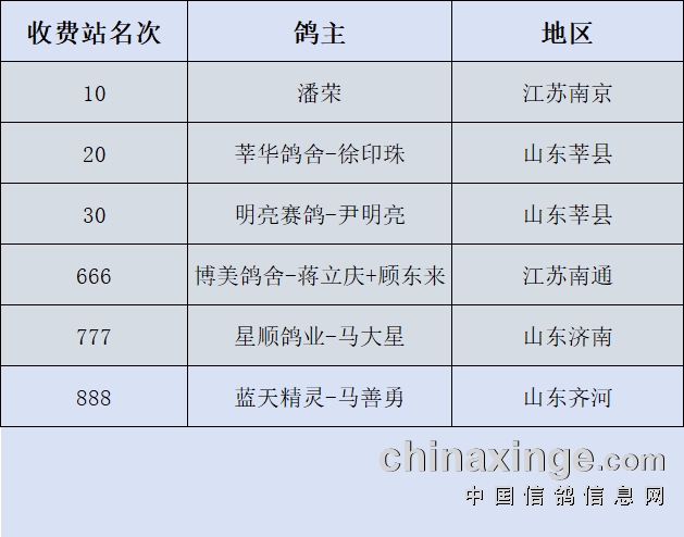 收费站监赛鸽友名单如下: