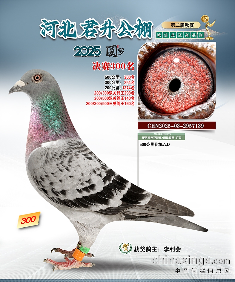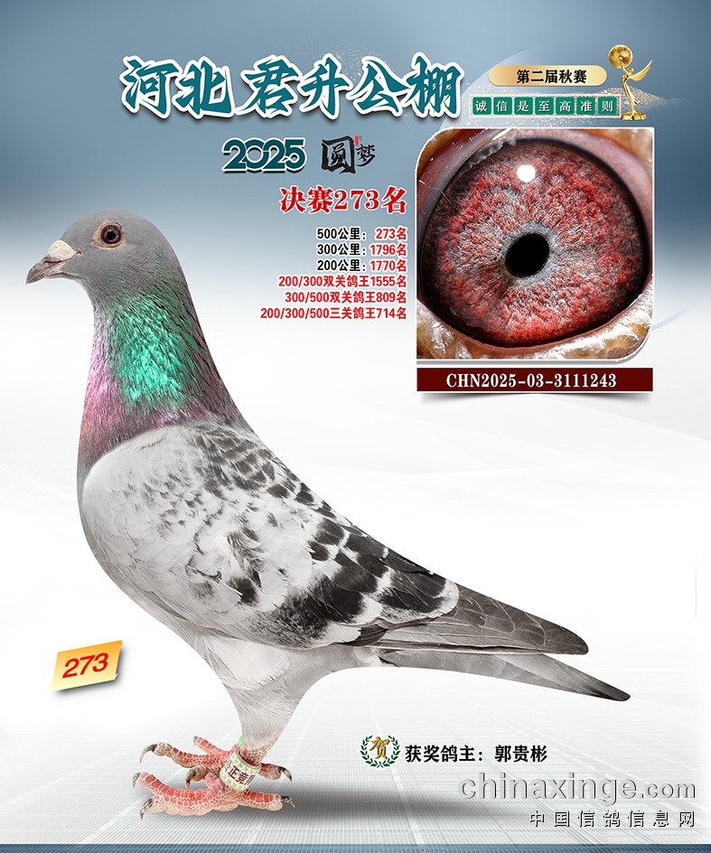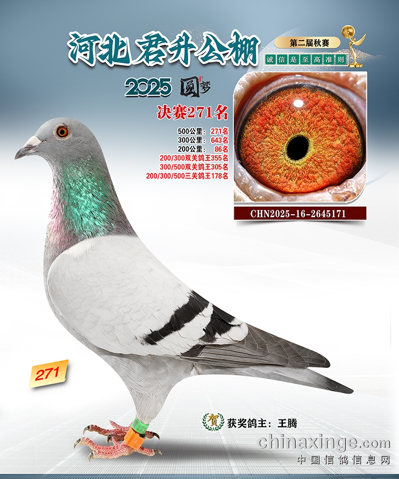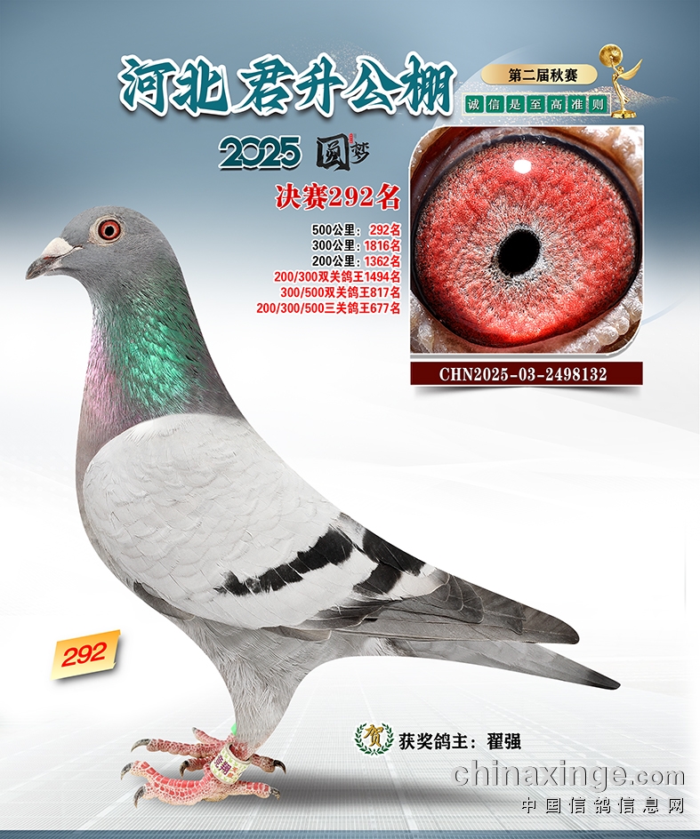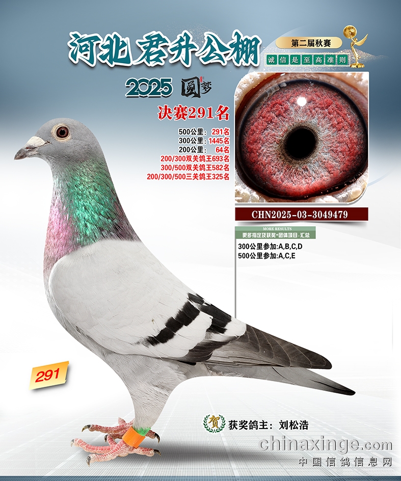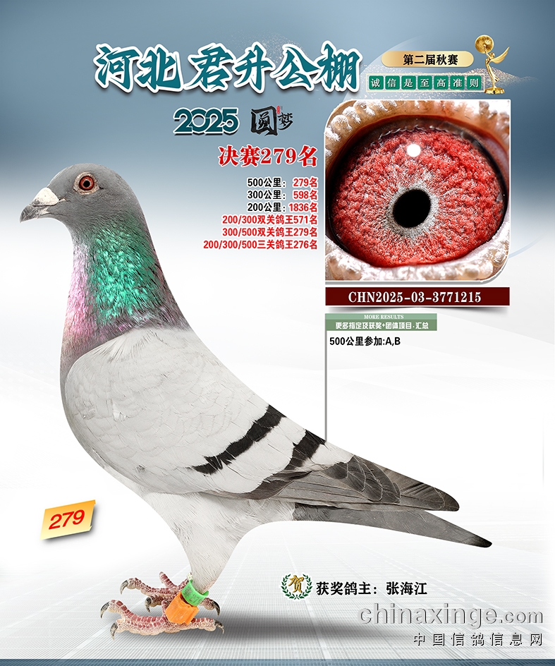 河北君升公棚秋赛500公里决赛271-300名获奖鸽照片