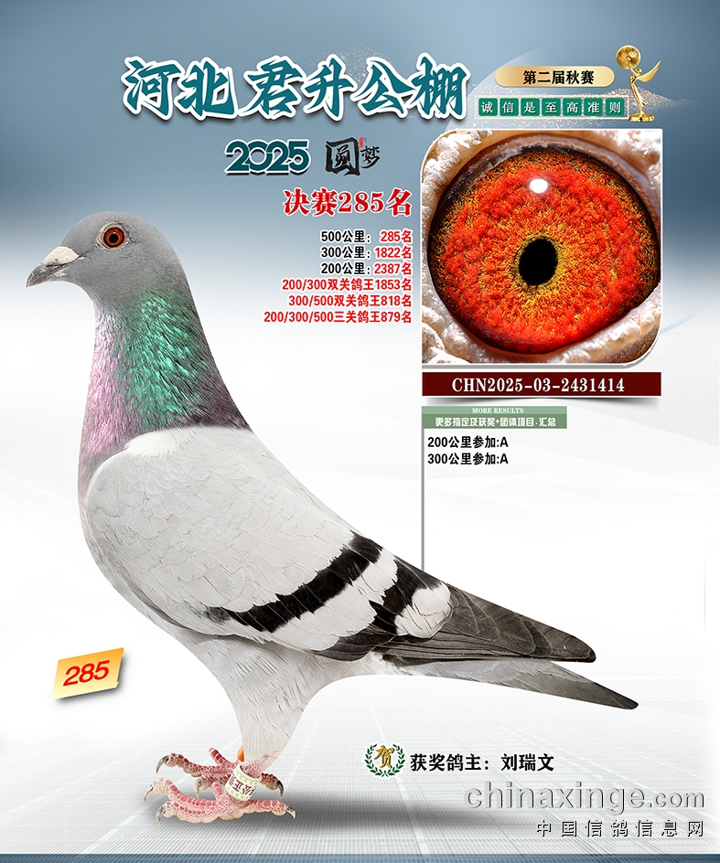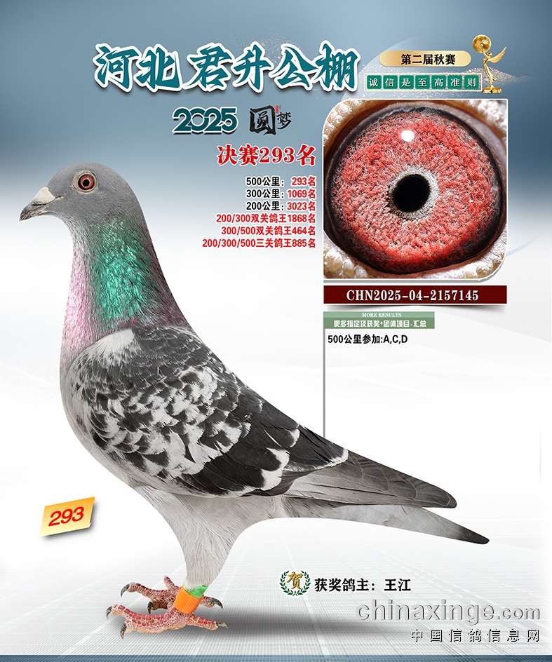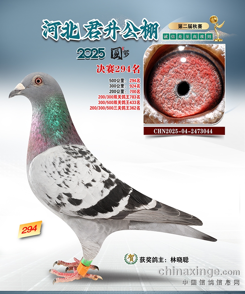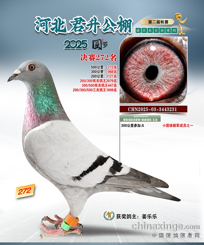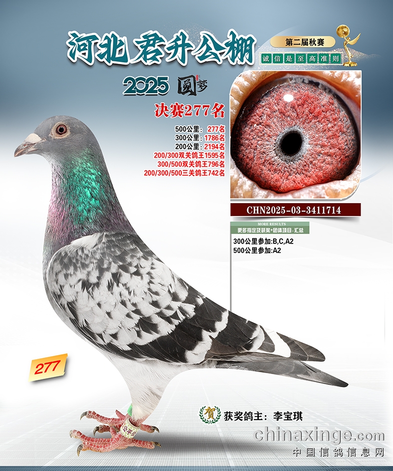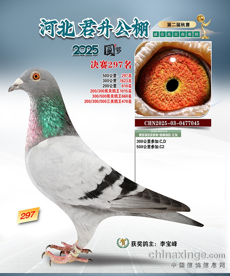 河北君升公棚秋赛500公里决赛271-300名获奖鸽照片