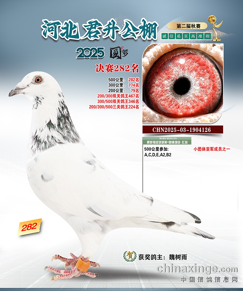 河北君升公棚秋赛600公里加强赛冠军-10名获奖鸽照片